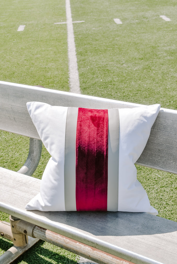 Materials: Made with canvas cotton, with a high-grade marine vinyl and velvet overlay in maroon and light grey.